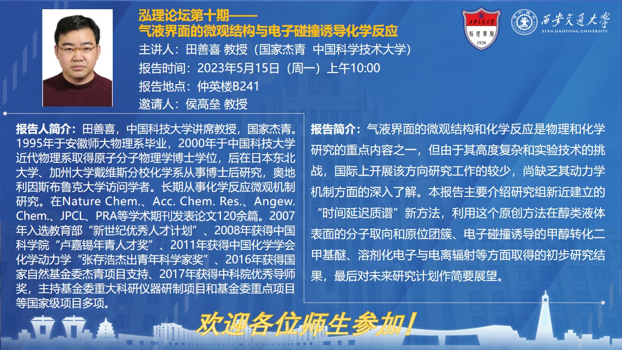 【泓理论坛】第十期——气液界面的微观结构与电子碰撞诱导化学反应