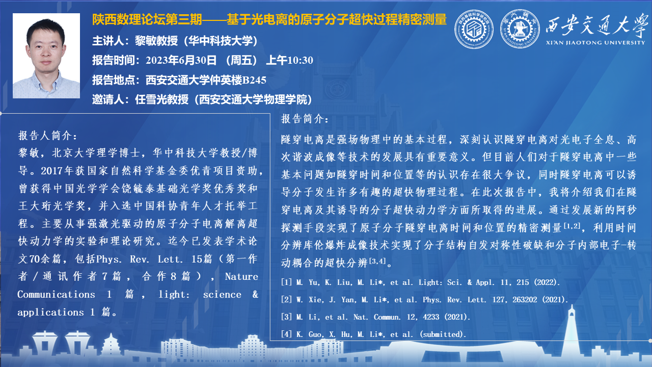 【陕西数理论坛第三期】——基于光电离的原子分子超快过程测量