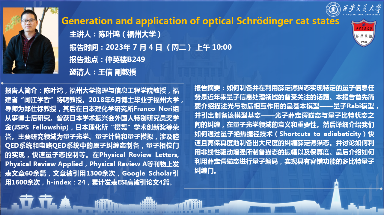 时间 2023年7月4日(周二)上午 10:00 地点 仲英楼B249