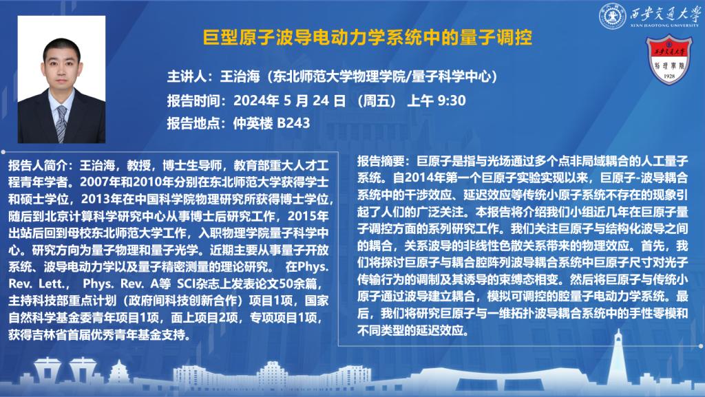 时间 2024年5月24日(周五)上午9:30 地点 仲英楼B243