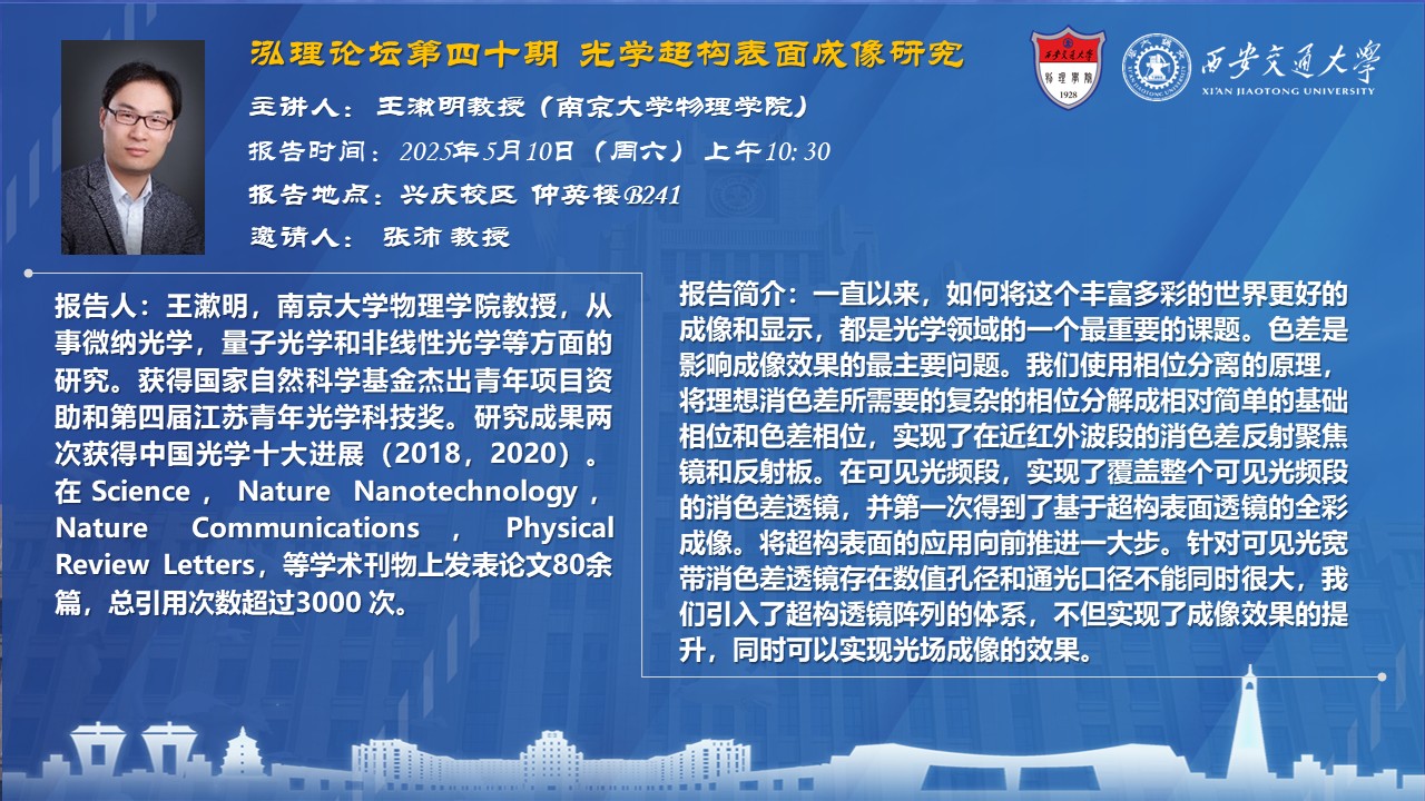 【泓理论坛第四十期】—— 光学超构表面成像研究