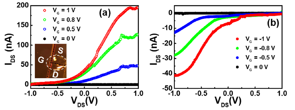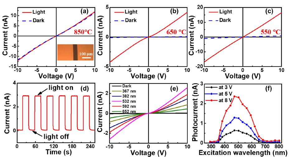 近日西安交通大学物理学院杨森教授团队与纽约州立大学布法罗分校曾浩教授团队合作,在500 ℃下成功合成了 薄膜以及相关光电探测器和场效应晶体管。该薄膜表面粗糙度仅为0.6 nm,且去除了高温处理带来的的硫空位和碳污染。以其为核心材料的光电探测器显示出了极快的光电响应速度(0.3 ms)和较高的开/关比(80)。场效应晶体管表现出双极性行为,其中电子和空穴迁移率分别为16.8 / Vs和2.6 / Vs,这些都为硫族化物钙钛矿薄膜在光电器件中的进一步应用打下了坚实的基础。