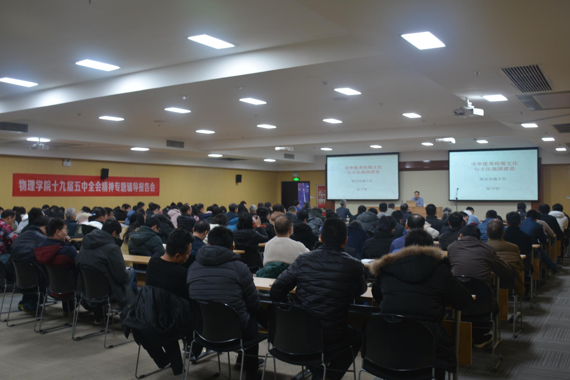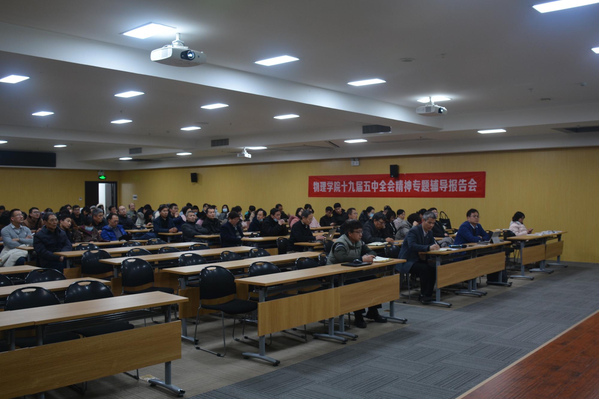 12月9日,物理学院在仲英楼举办十九届五中全会专题辅导报告会,邀请马克思主义学院陆卫明教授做报告,学院全体师生参加学习活动。学院分党委书记杨小渭主持会议。