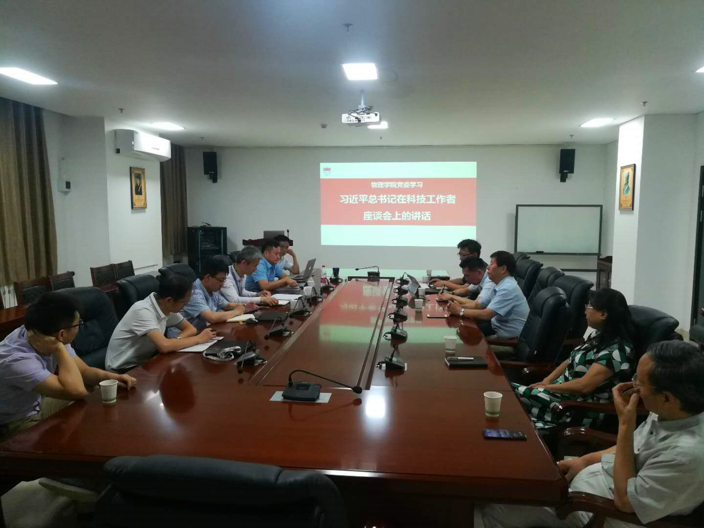 杨小渭带领大家学习习近平总书记在科学家座谈会上的重要讲话,深入领会习近平总书记关于加快科技创新的重大意义、科技创新发展的关键问题以及弘扬科学家精神方面的重要论述。强调物理学院领导干部、全体师生一定要认真学习讲话,深刻领会精神实质,结合物理学科作为基础学科的发展实际,以制定十四五规划为契机,抓住机遇,推动学院快速发展。与会人员以习近平总书记重要讲话为指导,围绕十四五规划,深入研讨学院发展问题。