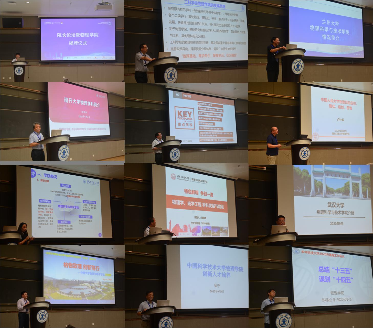 论坛特邀北京理工大学物理学院院长姚裕贵教授,北京航空航天大学物理学院院长吕广宏教授,南开大学物理科学学院院长张国权教授,兰州大学物理科学与技术学院院长罗洪刚教授,武汉大学物理科学与技术学院院长何军教授,西安电子科技大学物理与光电工程学院院长邵晓鹏教授,西北工业大学物理科学与技术学院院长翟薇教授,中国人民大学物理学系卢仲毅教授,中国科学技术大学物理学院院长徐宁教授,中南大学物理与电子学院院长孙克辉教授,围绕本次论坛主题,从各高校学院学科介绍,师资队伍,人才培养,科学研究,实验平台,发展规划等方面充分展示了各个高校物理学建设与发展的经验,针对目前存在的发展瓶颈问题给出了各具特色的建设方案与规划,会场反响热烈。