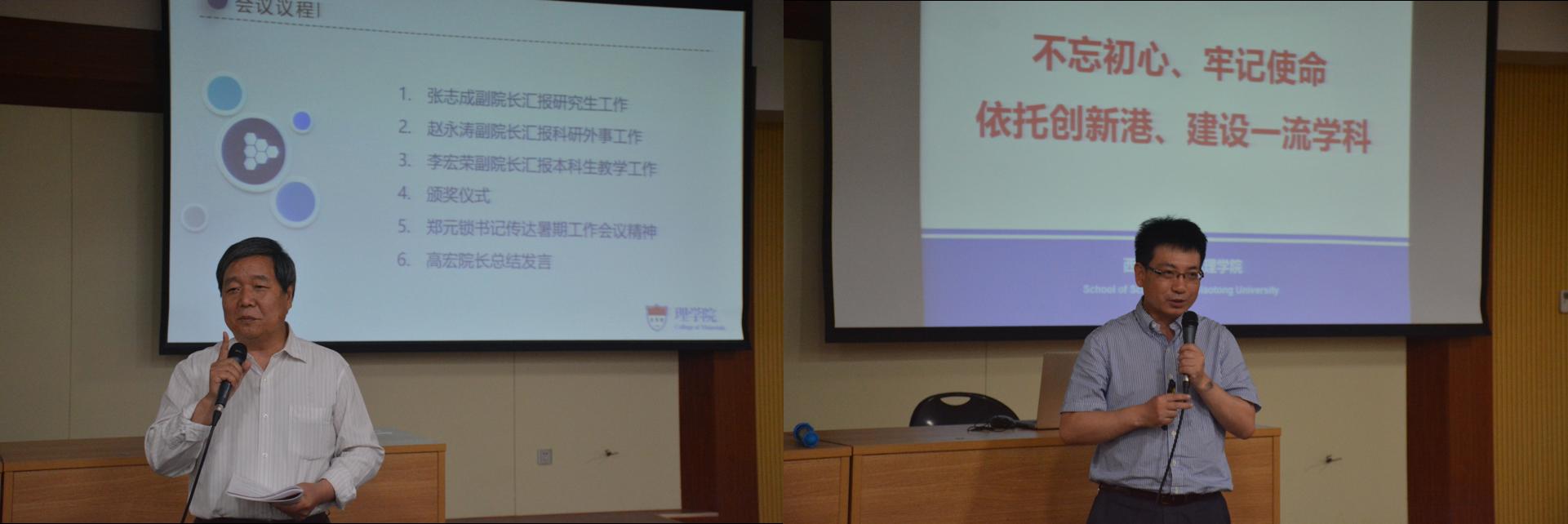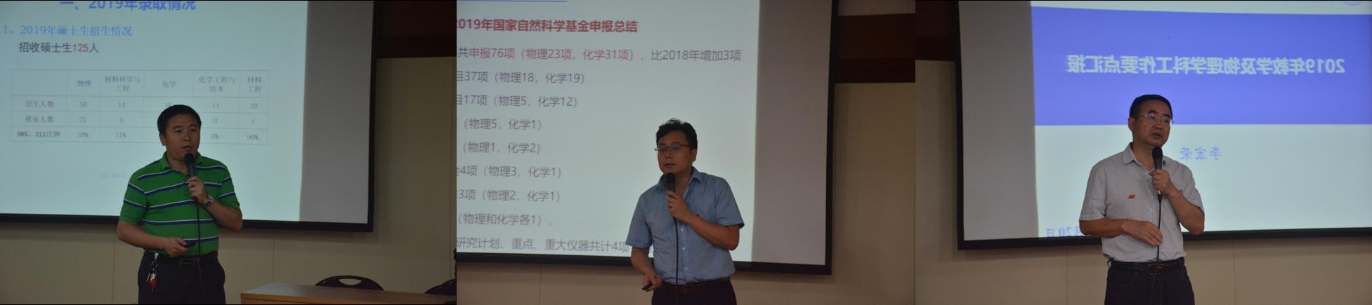理学院副院长张志成、赵永涛、李宏荣分别从研究生工作、科研外事、教学工作等方面汇报学院上半年工作和下半年计划。