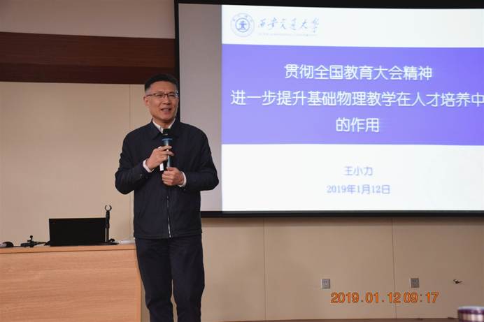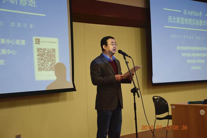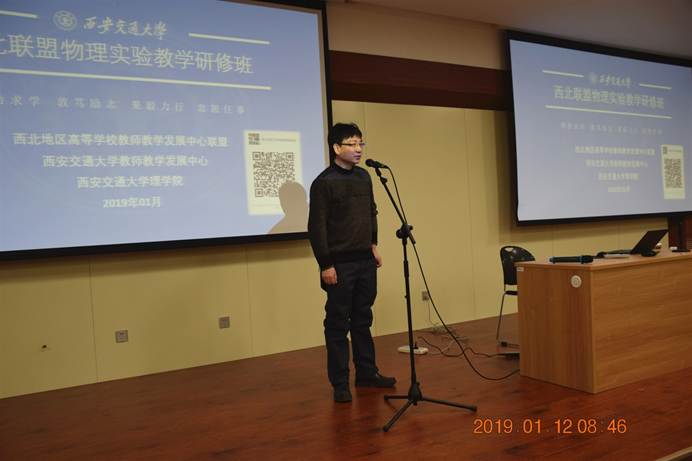 2019年1月12日上午,西北地区高等学校教师教学发展中心联盟物理实验教学研修班在仲英楼B102举行了隆重的开班仪式。本次研修班受中国高校实验物理教学研究会、国家级实验教学示范中心联席会物理学科组委托,由西安交通大学理学院物理国家级实验教学示范中心、西安交通大学教师教学发展中心、西北地区高等学校教师教学发展中心联盟共同举办。仪式上,西安交通大学原党委常务副书记、名师工作室主任王小力教授,西安交通大学教师教学发展中心主任马知恩教授和西安交通大学理学院院长高宏教授对来自全国50余所高校,涵盖985、211名校、独立院校与高职高专的广大教学名师、知名专家教授、学者和中青年教师表示热烈的欢迎。