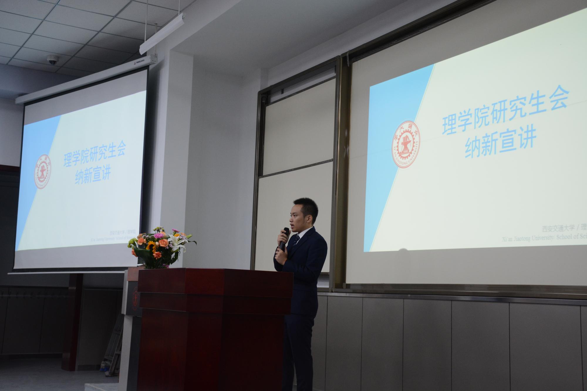 此外,理学院研究生会主席马超同学进行了研会招新的宣讲。
