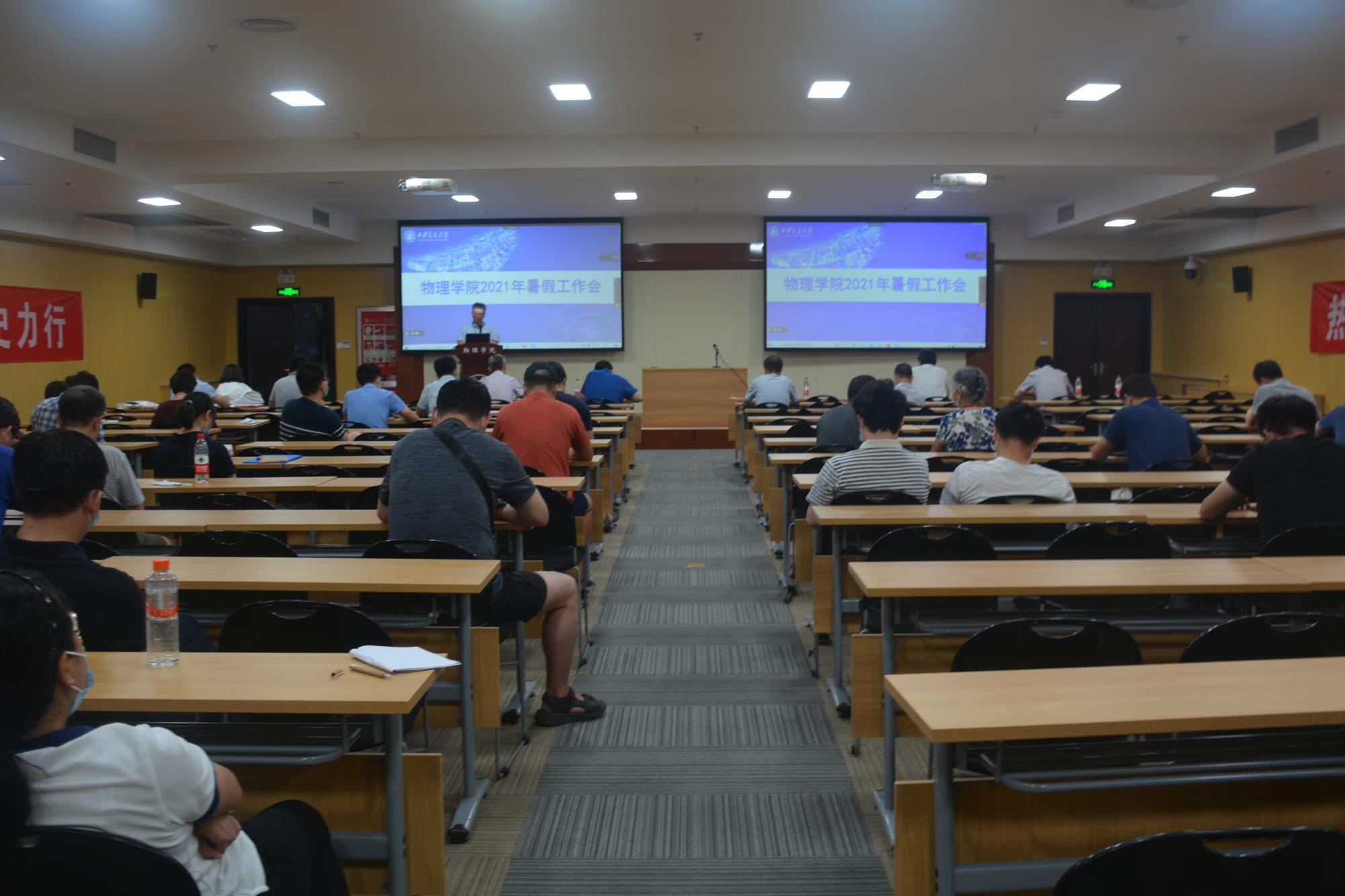 8月1日下午,物理学院召开全院教工大会,传达学习学校暑期工作会议精神。会议分三个会场召开,由党委书记杨小渭主持。