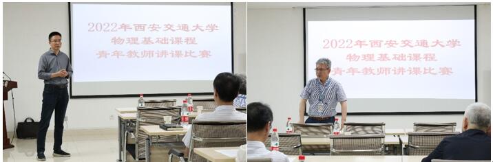 张沛教授介绍了举办本次校内讲课比赛的背景、重要性和评价方法,高宏院长在致辞中强调,青年教师讲课比赛是物理基础课程教学大练兵的平台,我校在大学物理和大学物理实验课程教学方面有很好的传统和示范作用,希望青年教师能够借助讲课比赛这个平台继承和发扬这种优良的传统,并在陕西省、西北地区甚至全国起到引领示范作用。