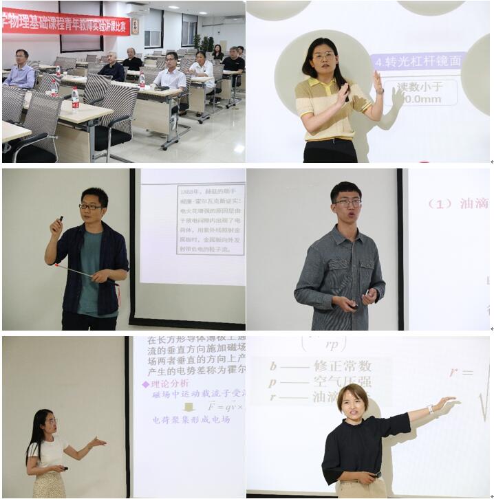 在随后的比赛中,五位参赛老师分别以光电效应、杨氏模量、密立根油滴和霍尔效应为主题,从课程思政、教学设计、实验的原理、实验操作等多方面展示了物理实验课程的教学过程和教学思考,评审专家从教学设计、教学语态、多媒体展示、课程思政等多方面对青年教师授课进行了全方位的指导。