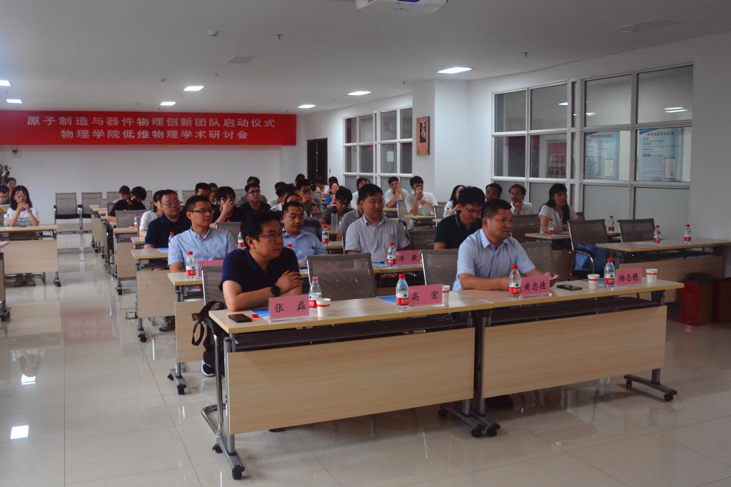 7月13日,物理学院举办原子制造与器件物理青年创新团队启动仪式暨低维物理学术研讨会。科研院常务副院长黄忠德、人力资源部副部长张磊、物理学院院长高宏、副院长杨志懋以及物理学院师生代表参加活动,物理学院王文慧副教授主持会议。