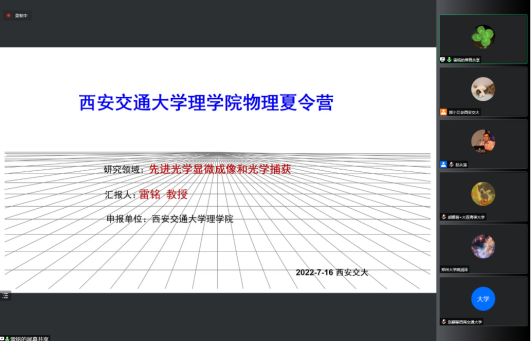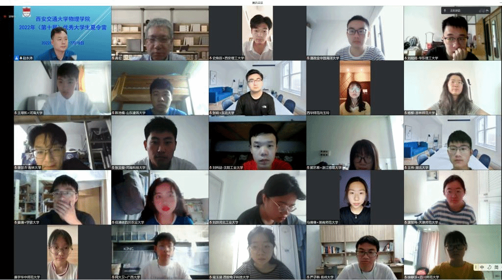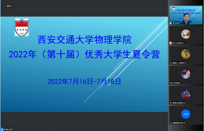 7月16日,西安交通大学物理学院2022年(第十届)全国优秀大学生夏令营在“云”端顺利举办。本届夏令营受到全国各高校学生的广泛关注,共收到来自全国100余所高校380多名学生的报名材料。物理学院本着公平、公正、优中选优的原则,遴选207名营员参加线上夏令营。