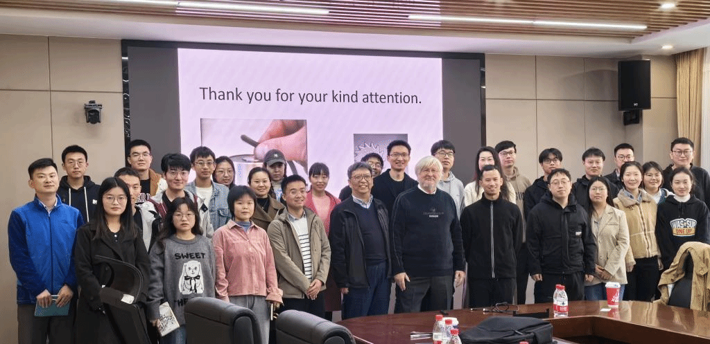 整个报告会上气氛热烈而富有活力,来自物理学院和前沿院等学院的近50位师生积极参与讨论,并向Miklos Zrinyi教授请教。Zrinyi教授耐心和深入的解答赢得了大家的称赞和敬佩。这次报告不仅仅是一场生动的学术讲座,更是Zrinyi教授以亲身经历为广大学子树立了良好的学习榜样,为他们指明了奋斗并坚持的努力方向。他的报告为我们提供了宝贵的教育和科研经验,也让我们更好地了解了匈牙利的教育和科研体系。Zrinyi教授欢迎西安交通大学的优秀学子有机会来匈牙利学习和交流,促进两国深厚的友谊发展和教育科研合作。