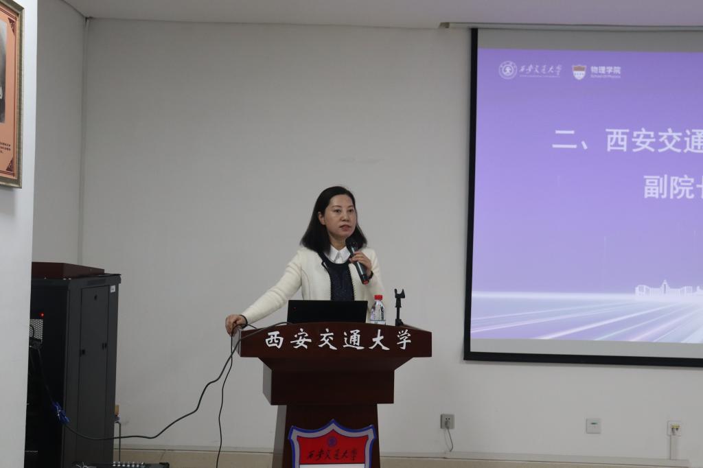 首先由程洁致辞,她强调推进产教融合,加强基础学科建设的重要性,鼓励同学们注重将科研与国家需求相结合,传承西迁精神,勇于创新和突破,拓展视野和思路,为国家和社会的建设贡献力量。