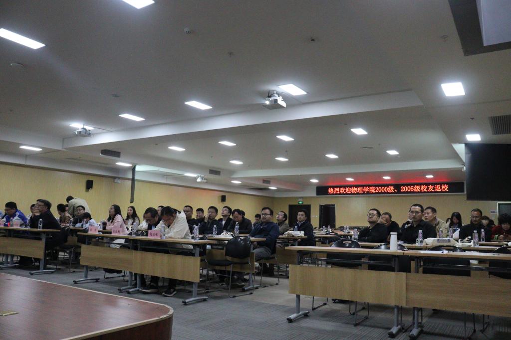 下午2点校友们在仲英楼B102报告厅集合,领取学院准备的礼品包。物理学院副书记张沛教授介绍了学院发展概况,他强调,学院各项事业高质量发展,离不开校友们全方位的支持,希望校友们一如既往地支持母校,常回家看看。物理学院副院长杨志懋教授对校友们的到来表示了强烈欢迎,他指出,校友是最有价值的资源,校友们在众多专业领域所取得的杰出成果,激励着一代代青年到祖国各地发光发热。