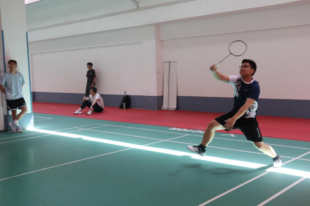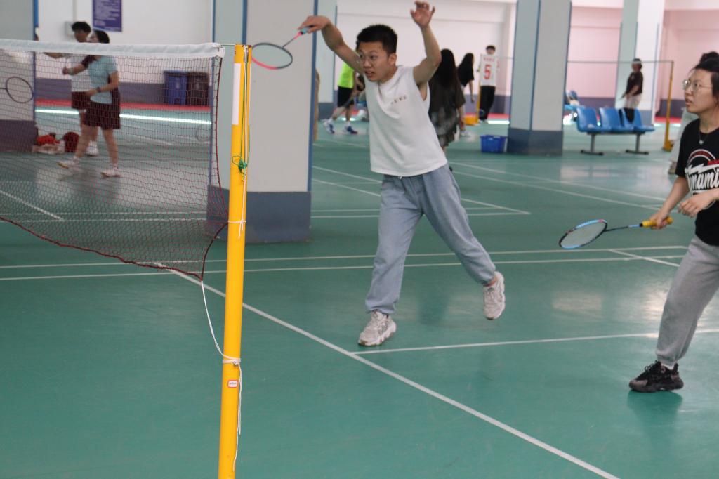 在男子单打比赛中,选手们在场上快速奔跑、高速挥拍,物理学院的苏旭昌以强劲的力量、快速的反应和变化多端的战术,勇夺冠军。