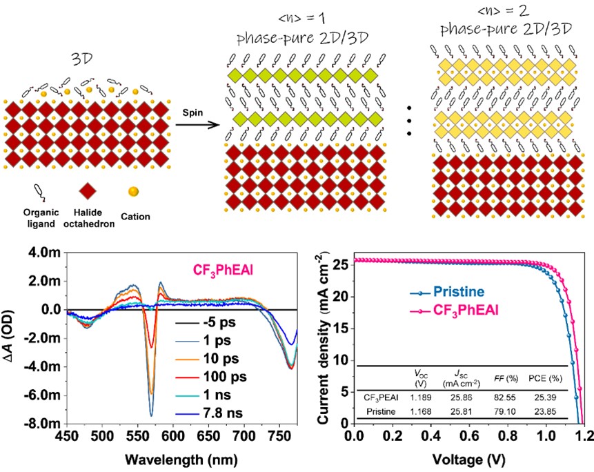 研究成果近期以“Nanoscale phase management of the 2D/3D heterostructure toward efficient perovskite solar cells”为题发表在《科学通报》(Science Bulletin)。澳门大学和西安交通大学物理学院为合作通讯单位,澳门大学应用物理与材料工程研究院邢贵川教授与西安交通大学物理学院梁超特聘研究员为论文共同通讯作者。杨涛特聘研究员和张楠特聘研究员分别为该工作提供了在理论计算方面和超快载流子动力学表征方面支持。以上研究得到了国家自然科学基金、物质非平衡合成与调控教育部重点实验室、陕西数理基础科学研究项目和中央高校基本科研业务费等项目的资助。
