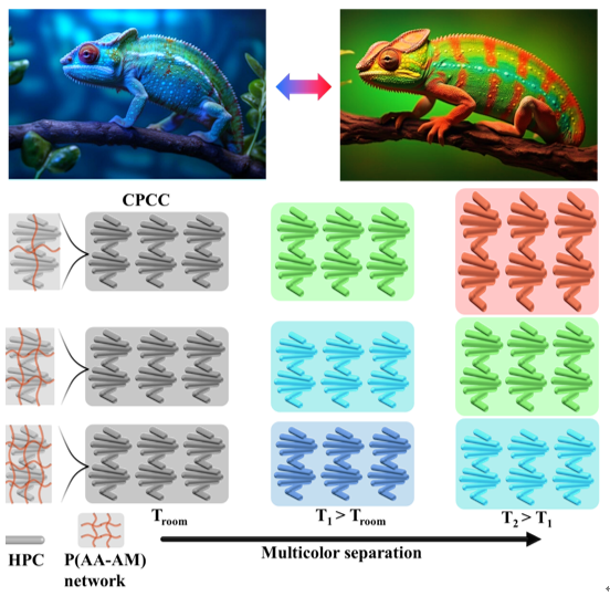 图1 受变色龙启发的HPC-P(AA-AM)复合材料的热致多色分离机制