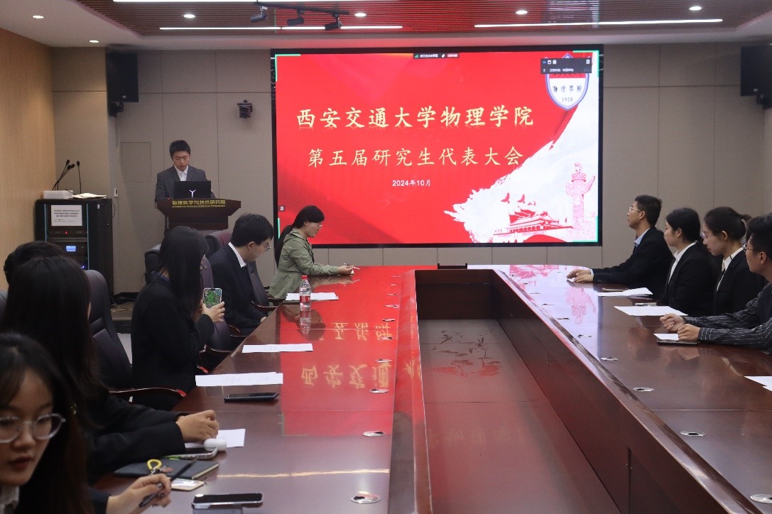 秋风送爽天高远,红叶飘飘舞翩跹。10月18日18时,西安交通大学物理学院第五次研究生代表大会在创新港泓理楼4-2112隆重举行,物理学院团委书记刘文慧、上级学联代表宋宇飞、院研会主席团候选人邹汇锦、谭冰冰、柯小才,以及学院研究生代表出席大会。会议由主席团成员候选人邹汇锦主持。