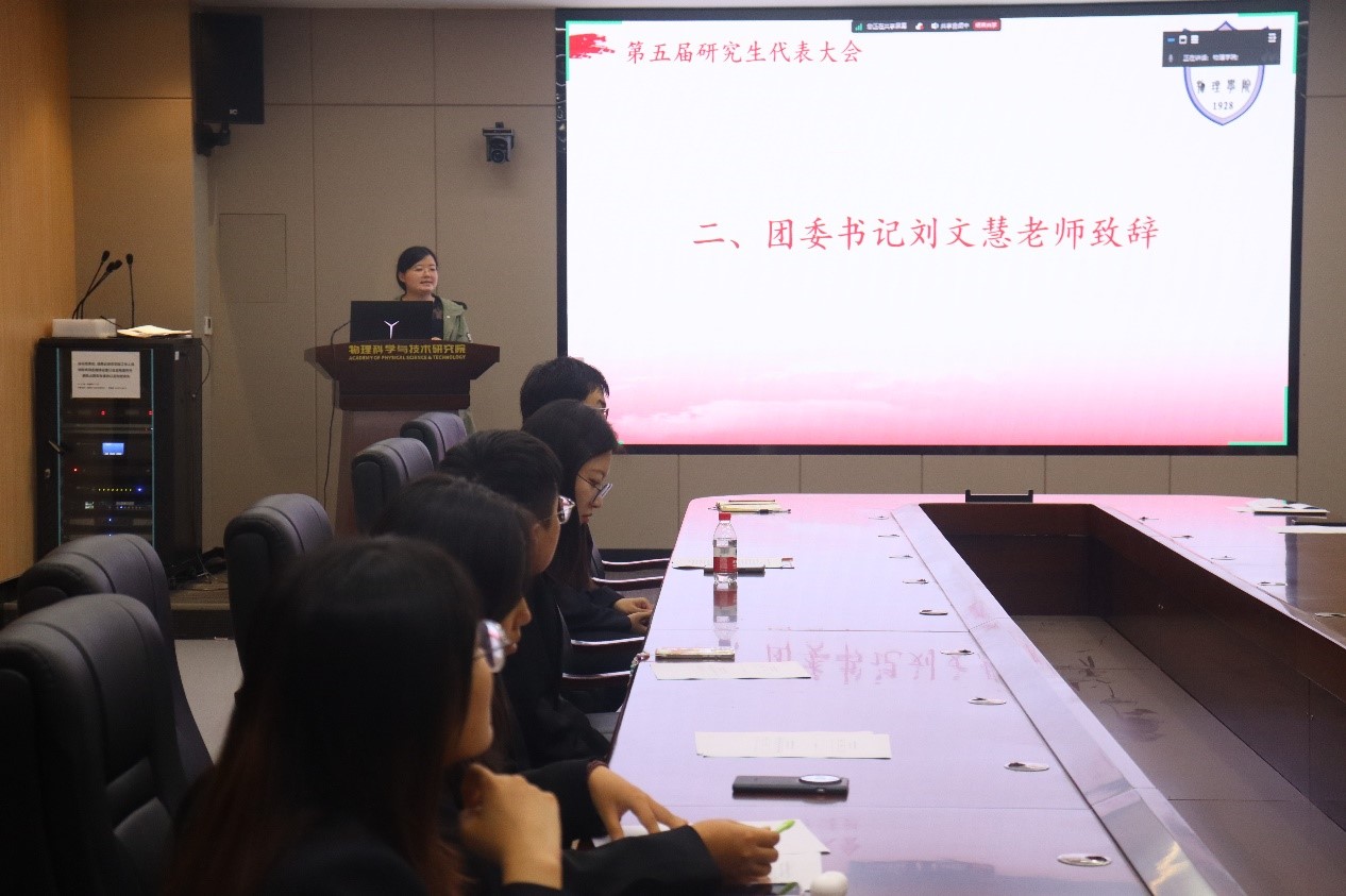 会议在庄严的国歌声中拉开序幕。物理学院团委书记刘文慧在致辞中,强调研究生代表的重要性,要认真履行代表权利和义务,并鼓励同学们通过研究生代表大会等平台,积极反馈科研与生活中的问题,维护自身权益。她指出,作为研究生,要在科研上精益求精,在生活中乐于助人,为同学们服务,展现积极向上的精神面貌。