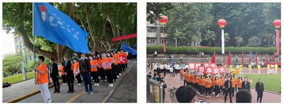 伴随着主持人慷慨激昂的解说词和欢呼声,学院研究生代表队由院长高宏、党委书记杨小渭、党委副书记张沛带队,物理学子紧随其后,步伐整齐坚定,“百年交大,理学当先,一流交大,一流物理”的口号声回荡在田径场上,展现了物理人的独特风采!
