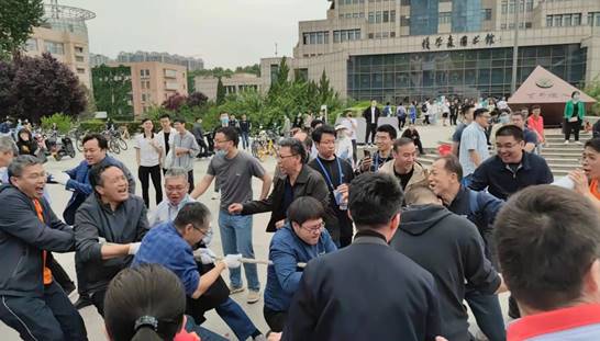 学院教师代表约70多人参加了1500米、4×100米接力、跳小绳、踢毽子、铅球、拔河、陆上赛艇、10×60米接力跑等多项个人项目和所有的集体项目,体现了物理学院教师的热情与活力,也体现了大家心往一处想、劲往一处使的体育精神,增强了教师之间的凝聚力。杨生春老师铅球乙组第四名,樊亚萍老师60米拍球跑第四名,刘悠老师铅球第八名,李广良老师1500米第七名,4×100米接力跑中,我院教师张杨、刘杰、王清迪、栗建兴身姿矫健、奋勇争先,荣获第五名的好成绩;特别是在拔河比赛集体项目中,党委书记、院长等各位领导齐心上阵,团结一致、激情昂扬,带领全院教师获得了第七名的好成绩。最终,物理学院荣获本届校运动会教工组“优秀组织奖”的荣誉称号,彰显了物理学院教师们昂扬向上的精神风貌和师资队伍的气魄!