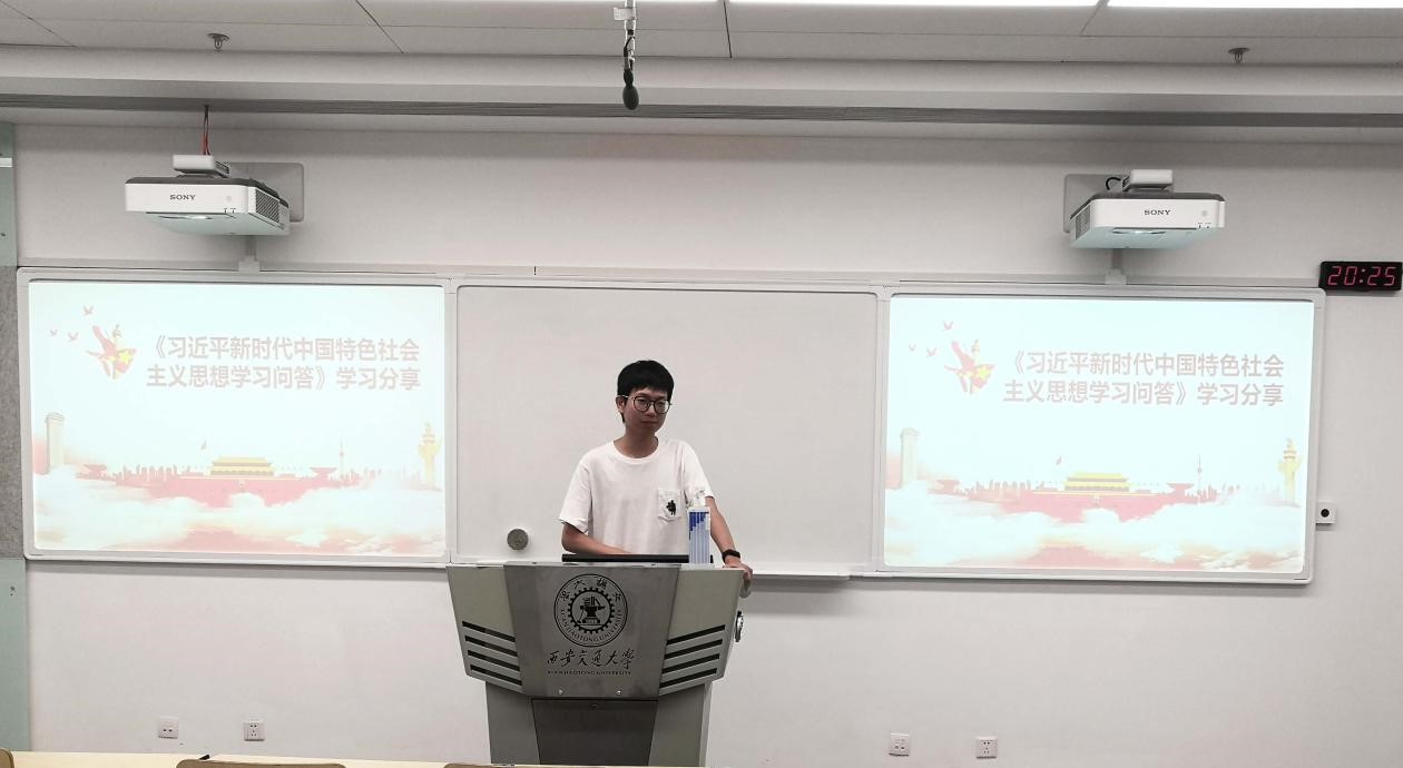 瞿忠琪同志分享了《习近平新时代中国特色社会主义思想学习问答》的学习与感悟,从国家宏观角度和党员微观角度来学习《问答》中的创新理论与实践思想。我国正处于实现中华民族伟大复兴的关键时期,国家经济实力、科技实力、国防实力、综合国力国际影响力显著提升。在此关键时刻,党员更应该回顾党史,从中总结智慧与经验,在新时代中做一名好党员。