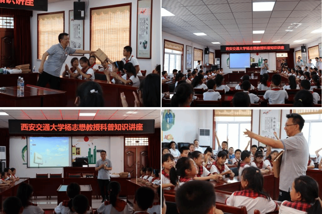 杨志懋来到丹凤县铁峪铺镇中心小学为四年级学生带来科普讲座,受到了同学们的热烈欢迎。杨教授的讲座生动活泼、不断和学生互动,将复杂的物理原理转变为简单生活小知识和实验现象,为孩子们打开了科学探求的大门,杨教授还为积极参与答题的孩子们赠送了小礼品。本次宣讲是“强基科普宣讲团”的实际行动,为乡村的孩子们带来了关怀与温暖,也展现了物理学院服务基层的使命与担当!
