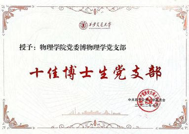 物理学院博物理学党支部荣获2022年西安交通大学“十佳博士生党支部”荣誉称号