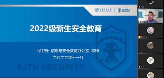 为切实增强新生安全防范意识,提高新生安全防范能力,营造安全文明的校园氛围,114日晚,物理学院和数学学院在线上举行2022级新生安全教育讲座。本次讲座由保卫处信息与安全教育办公室常帅老师主讲,物理学院辅导员刘文慧主持,物理学院和数学学院2022级研究生新生参加讲座。